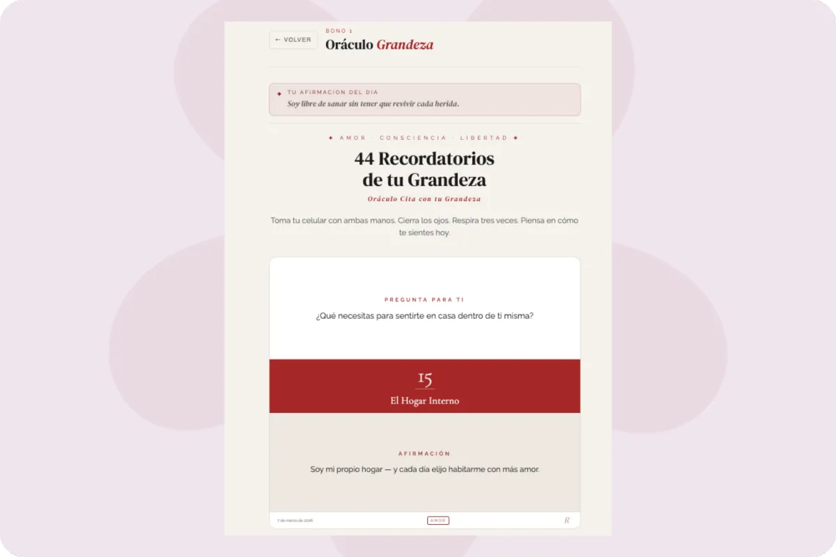 En el taller en vivo Cita con tu Grandeza, recorreremos un proceso simple pero profundo para reconectar contigo misma.